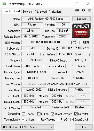 Radeon HD 7850 GPUZ